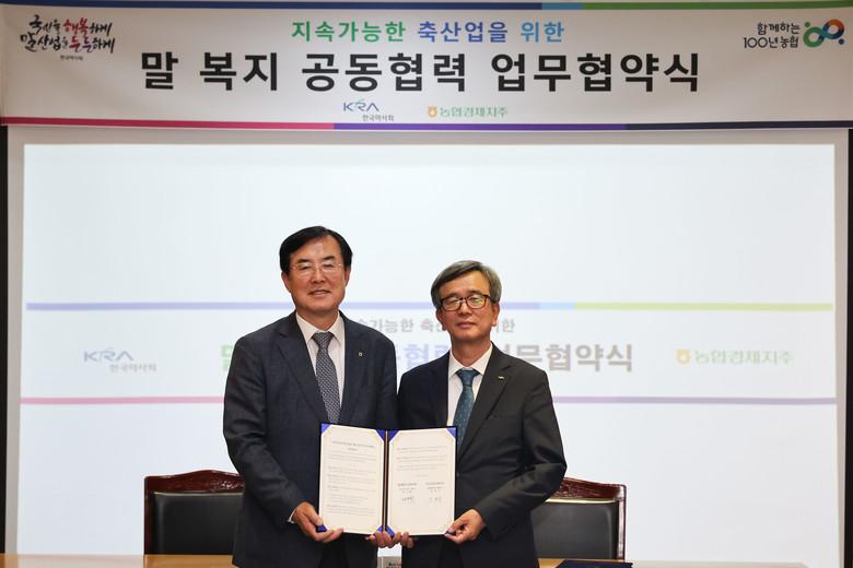 [세계타임즈 = 송민수 기자] 한국마사회(회장 정기환)는 10월 5일(목) 경기도 안성시 안성팜랜드에서 농협경제지주(대표이사 안병우)와 ’지속가능한 축산업을 위한 말복지 공동협력 업무협약‘을 체결했다.
