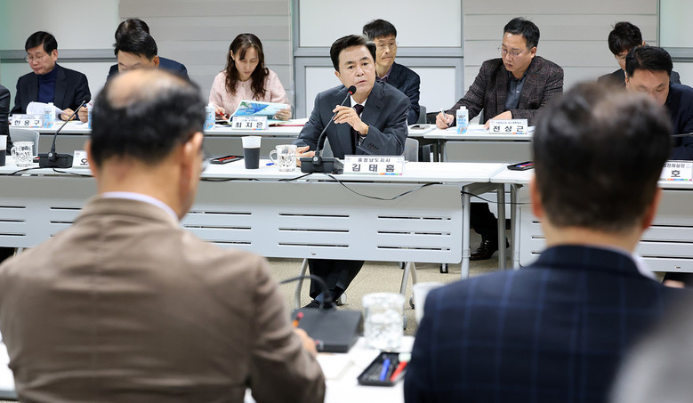 김태흠 지사와 도 관계 공무원, 11개 기업 관계자 등 19명이 참석한 가운데, 이번 회의는 현안 보고, 기업 의견 수렴 등의 순으로 진행했다.