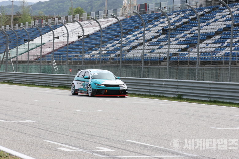 [세계타임즈=방춘재 기자] ‘2024 현대 N 페스티벌’ 개막전에서 진행된 아아이오닉 5N eN1 클래스가 4월 27~28일 강원도 인제군 인제 스피디움 A코스(1랩=2.577km)에서 펼쳐졌다.