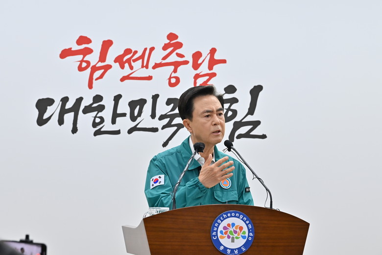 김태흠 지사는 22일 도청 프레스센터에서 기자회견을 열고, 지난 16일부터 19일까지 이어진 폭우 피해 지원대책을 발표했다.