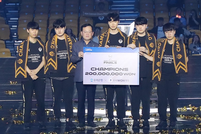 챔피언으로 등극한 젠지팀은 예선전부터 탁월한 개인기와 팀워크로 상대 팀을 완파했다. 우리은행 조병규 은행장은 결승전을 직접 관람하고 우승팀에게 우승 상금 2억원과 함께 우승 반지를 전달하며 축하 인사를 건넸다.