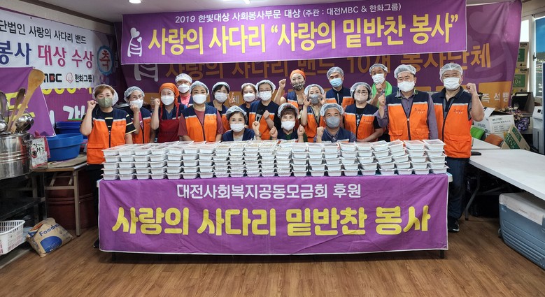 [대전 세계타임즈=이채봉 기자] 6년째 꾸준히 대전시 소외계층을 위해서 다양한 봉사를 펼치고 있는 대전시 봉사단체 사랑의 사다리 밴드(리더 이정제)는 2일 대덕구 소외계층 70가정에 사랑의 밑반찬 3종류를 전달하면서 우리 사회의 따뜻한 사랑을 실천 하였다.