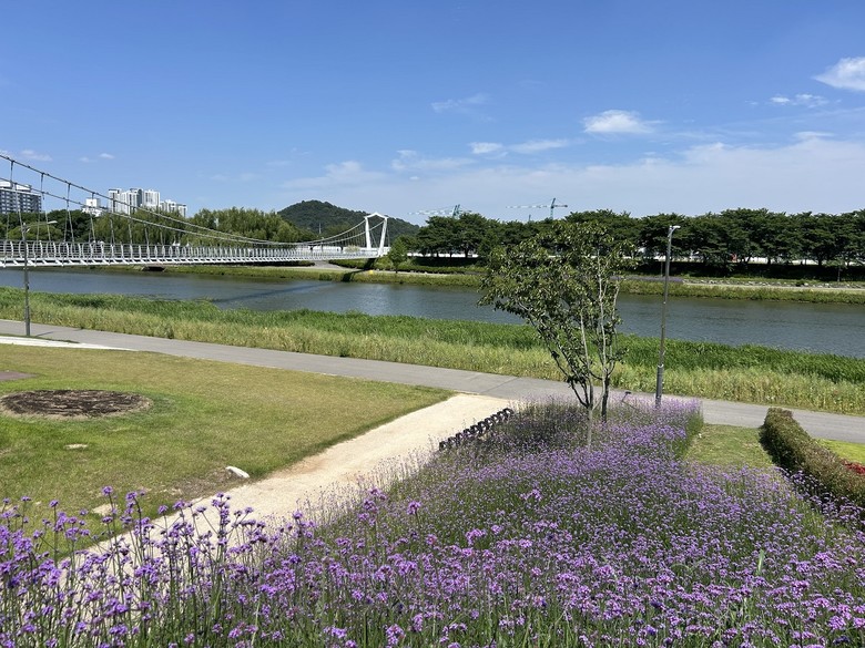 [순천시 세계타임즈=우덕현 기자] 순천시(시장 노관규)가 그린아일랜드 사면과 동천 수변을 따라 보랏빛 ‘버들마편초’ 꽃물결을 연출하며, 한여름의 생동감을 더하고 있다.