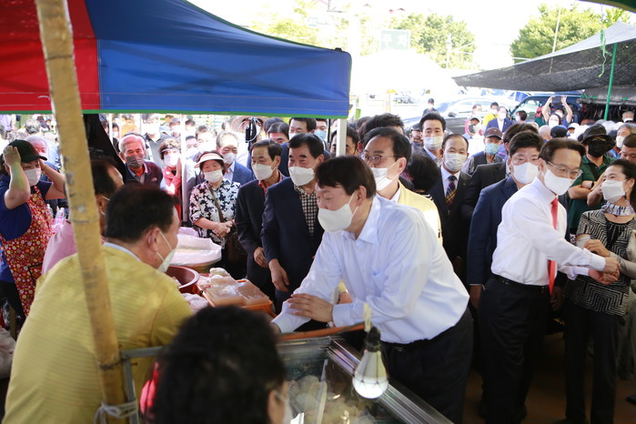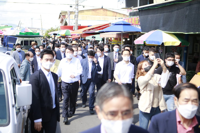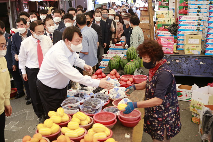 일부 상인들은 상인들과 주민들 틈에서 땀을 흘리는 尹후보에게 시원한 물을 대접하며 응원의 목소리를 외치기도 했다.