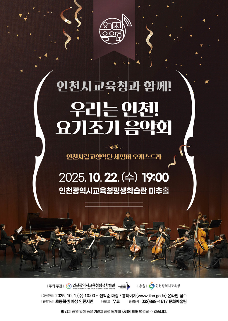 이번 공연은 인천시립예술단의 찾아가는 프로그램으로 현악기와 타악기가 어우러진 체임버 오케스트라 무대를 통해 깊은 울림과 풍성한 하모니를 선사할 예정이다.