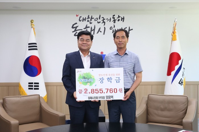 [동해시=세계타임즈 김민석 기자] 동해시의회 부의장 임응택 의원은 7월 31일 동해시민장학회를 방문한 자리에서 향토인재 양성 위해 써달라며 의정 활동비와 월정수당 2,855,760원 전액을 시민장학금으로 기탁했다.