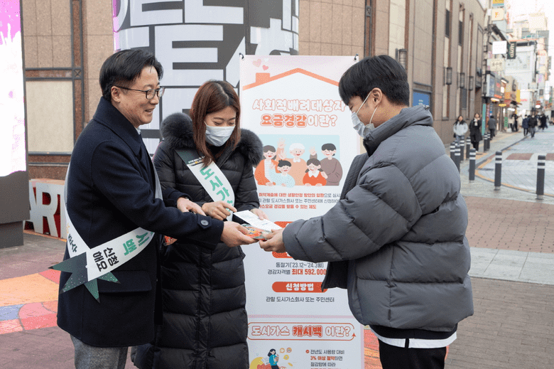 가스공사 직원들은 캠페인을 통해 지역 주민들에게 겨울철 도시가스 절약 캐시백 제도 및 에너지 절약 실천 요령을 안내하고 수면양말 등 방한 물품을 배부했다.