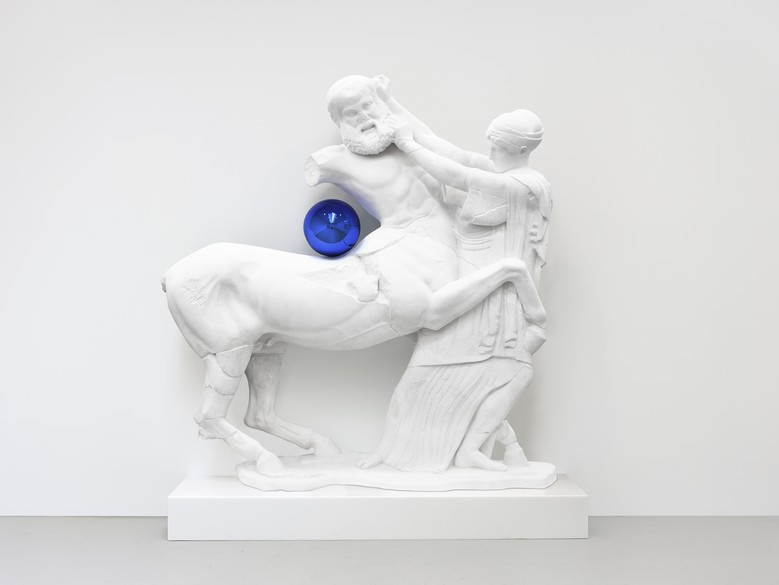 이번에 전시되는 작품은 신화 속 켄타우로스와 라피스의 전투를 묘사한 높이 2.2m의 석고 조각상으로, 세계적 미술 박람회 ‘프리즈 서울 2023’에서도 소개돼 호평 받은 바 있다. 판매가는 약 52억이다.