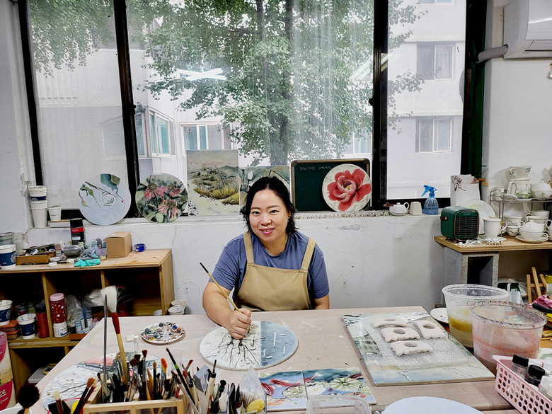 'K-아트페어' 전시를 진행하는 김은경 작가는 "작품의 소재로 활용된 물방울과 자연속의 식물은 원초적 아름다움을 간직하여 그 순수한 매력을 발견하는 재미가 있고, 순수성을 회화적으로 솔직하게 표현하고자 노력하였다. 작은 물방울의 영롱하고 신비스런 느낌이 관람객에게 전달되어 함축된 행복의 메시지가 자연스럽게 스며들길 바란다."고 말했다. 작가는 국립과학기술대학교 조형대 응용회화, 세종대 융합예술대학원 도자회화 출신으로 개인전 및 단체전을 통해 도자회화를 소개하여 다양한 미술의 세계를 알리고 있다.