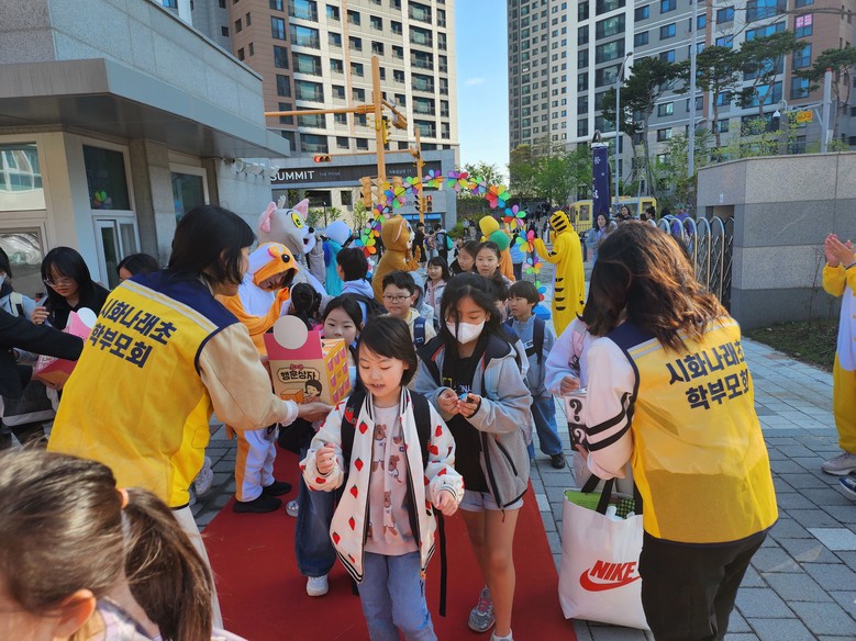 시화나래초등학교 학부모회는 학생들을 맞이하기 위해 선생님들과 협조하여 준비하였다. 인형 탈을 쓴 학부모회 임원들은 아침 인사를 하며 아이들을 맞이했다. 또한, 간단한 뽑기를 준비해 아이들이 선물을 받는 행복을 느낄 수 있도록 했다.