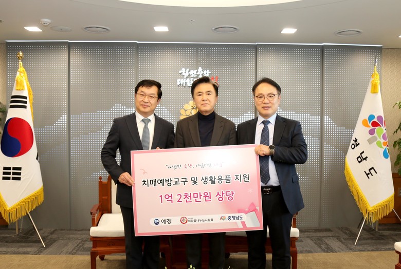 애경산업은 충청남도와 함께 지역사회 어르신들의 치매예방과 인지건강 증진을 위해 이번 전달식을 마련했다.