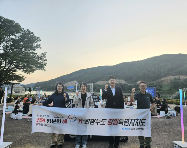 [강원도 세계타임즈=김민석 기자] 강원관광재단(대표이사 최성현, 이하 재단)은 9월 27일(토) 화천군 거례리 사랑나무에서 개최한 ‘별빛이 내리는 요가’ 행사를 약 60명의 참가자가 함께하며 성공적으로 마무리했다. 이번 행사는 소규모로 진행돼 참가자들이 보다 깊이 있는 체험과 교감을 나눌 수 있었다.
