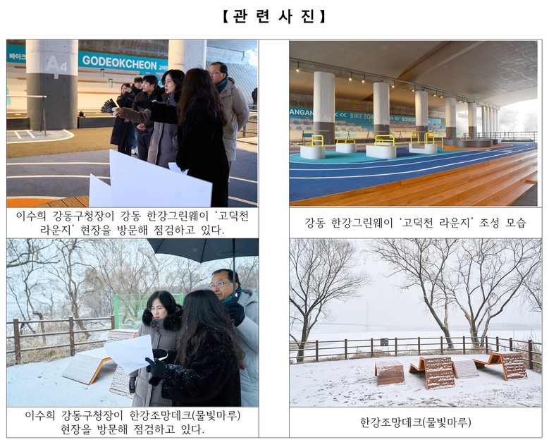 이수희 강동구청장은 “그동안 활용이 어려웠던 교량 하부 공간을 시민을 위한 수변 쉼터로 되살렸다”며 “고덕천 라운지가 강동 한강그린웨이의 핵심 거점으로 자리 잡아, 구민 누구나 일상 속에서 편안하게 찾는 휴식공간이 되길 기대한다”고 말했다.