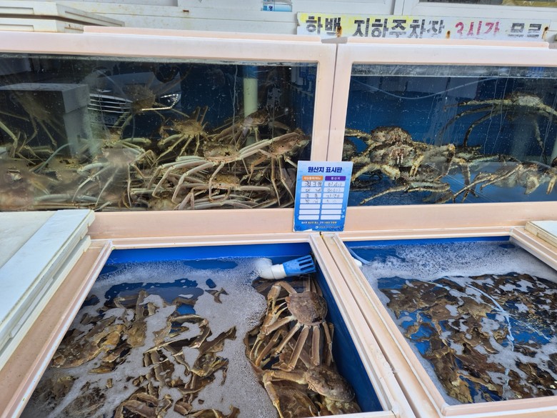 또한 손님들에게 주목받는 대개가 한창 '인기 메뉴'로 떠오르고 있다.큰 수족관에 대게.킹크랩 랍스터 등 다양한 해산물과 횟감들이 수족관에 가득하다.특히 대개는 가계에서 쪄서 잘 양념이 들어간 대개를 먹거나 아니면 생물로 구입하여 집에서 쪄 먹는 방법도 있다 하지만 집에서 잘못 찌면 비리고 맛이 없기 때문에 쪄서 포장하여 가져가는걸 적극 추천하고 있다.