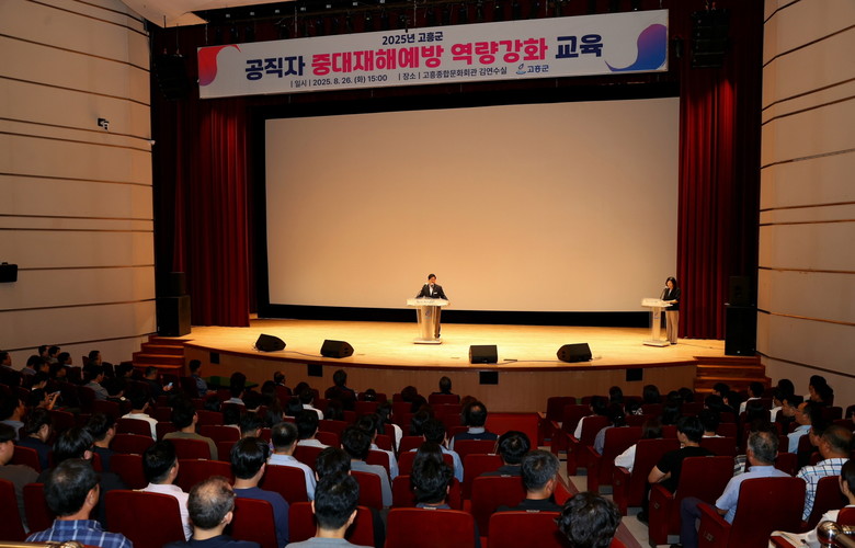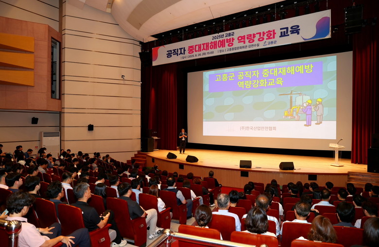 [고흥군 세계타임즈=우덕현 기자] 고흥군(군수 공영민)은 지난 8월 26일 고흥문화회관 김연수실에서 공직자 580여명이 참석한 가운데 중대재해예방 역량강화 교육을 실시했다고 밝혔다.
