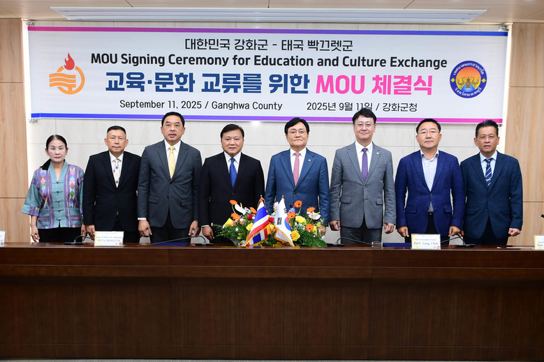 [강화군 세계타임즈=심하린 기자] 강화군(군수 박용철)은 지난 11일 태국 논타부리주 빡끄렛군(시장 위차이 반다삭)과 교육·문화 교류 협력을 위한 양해각서(MOU)를 체결했다.
