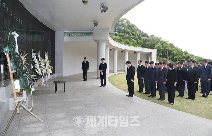 [대전=세계타임즈 이장성 기자] 권선택 대전광역시장이 6일 대전 유성 국립대전현충원에서 열린 제62회 현충일 추념식에서 참석자들과 함께 분향하고 있다.