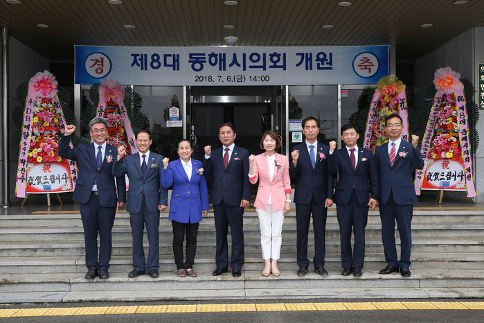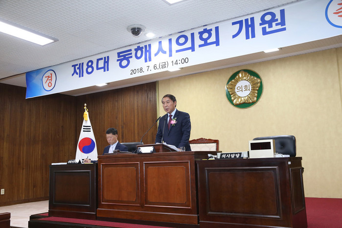 한편, 최석찬 의장은 이날 개원사를 통해 “제8대 전반기 동해시의회 의장으로서 급변하는 시대적 환경변화와 주민들의 다양한 욕구에 부응할 수 있는 의회상 정립에 앞장서겠다며, 신뢰받는 의회, 소통.화합하는 의회, 실천하는 의회 상 정립을 위해 모든 역량을 집중하겠다”고 의정방향을 밝혔다.