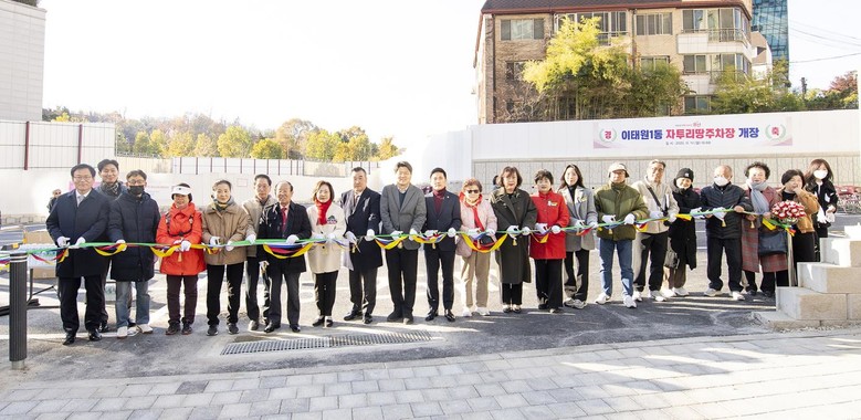 [용산구 세계타임즈=이장성 기자] 서울 용산구(구청장 박희영)가 지난 17일 이태원1동에 50면 규모의 ‘자투리땅 주차장 9호’ 공사를 완료하고 준공식을 열었다. 본격적인 운영은 18일부터 시작한다.