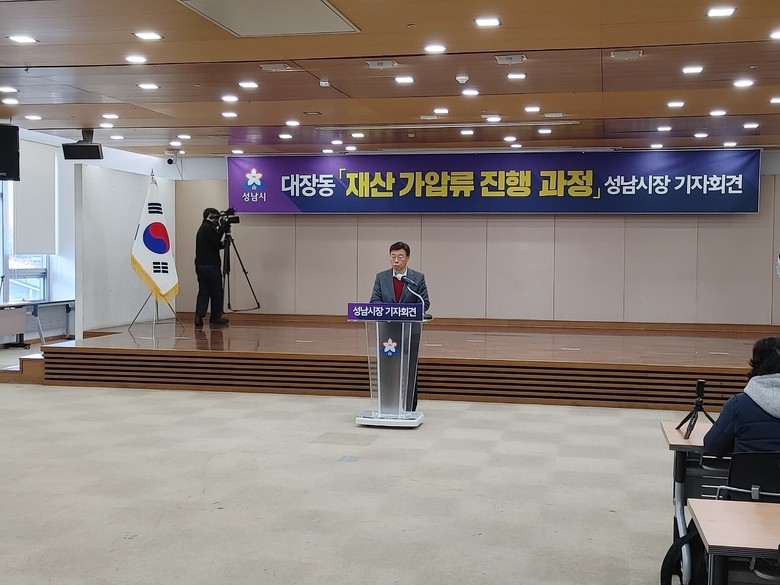 | ▲신상진 성남시장 대장동 '재산 가압류 진행과정' 기자회견 현장. |