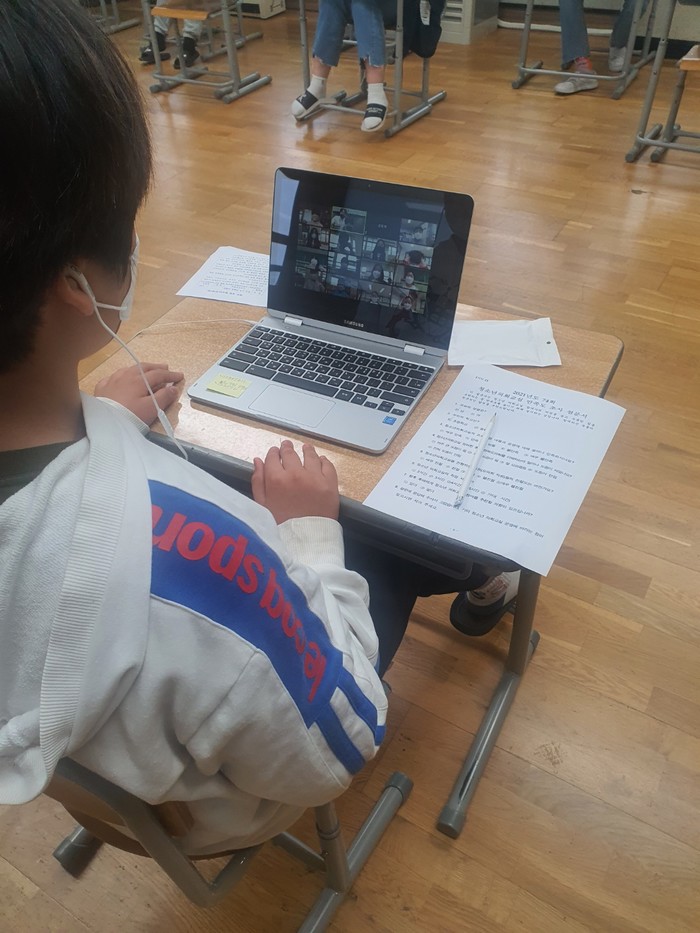 코로나19 방역지침을 준수하기 위해 온라인으로 진행한 ‘2021년 청소년 의회교실’에는 사직초(교장 백승운) 6학년 2반 학생 22명이 참석했다.