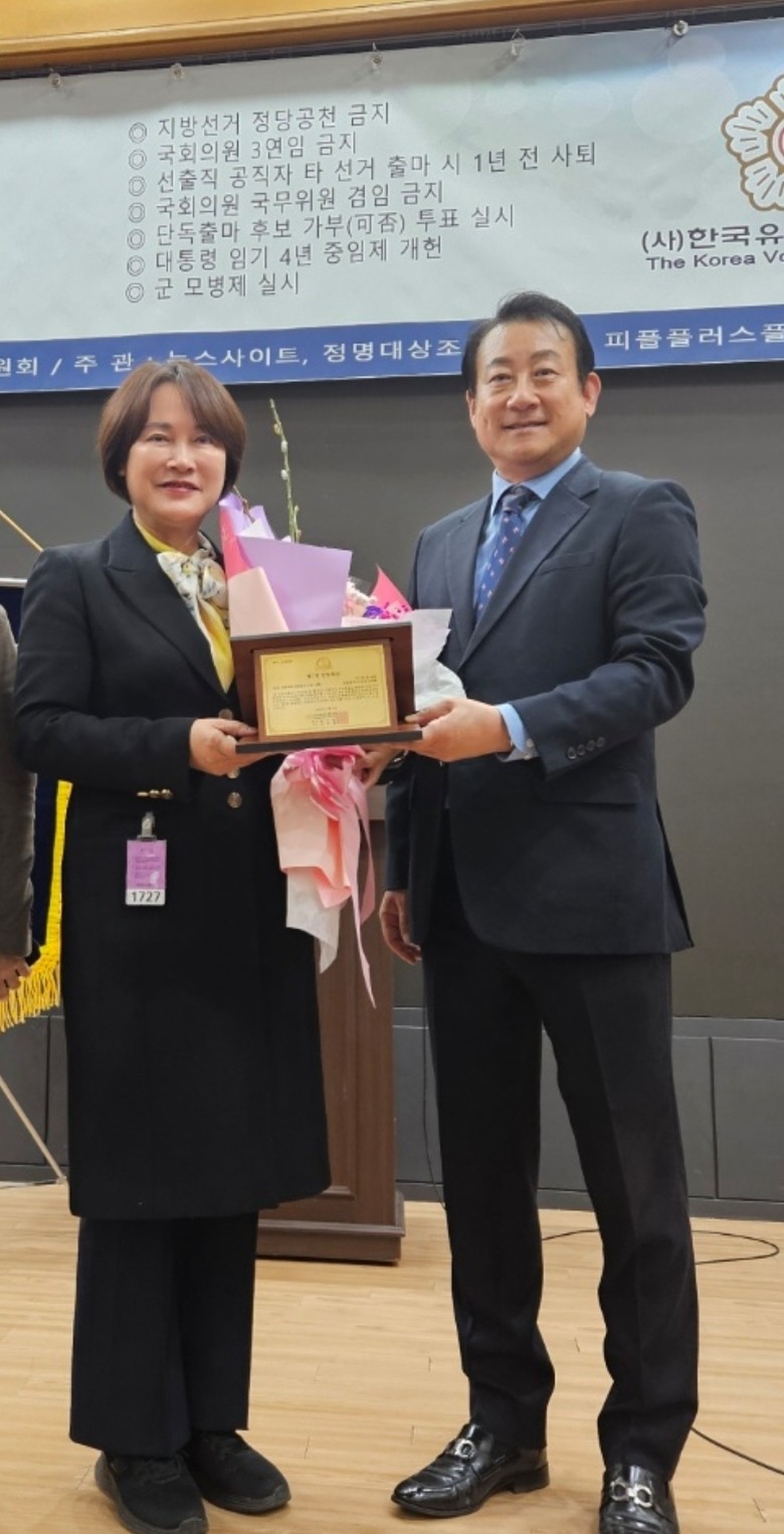 [남동구 세계타임즈=심하린 기자] 남동구의회 이정순 의장(더불어민주당/간석2‧3동, 구월2동)은 지난 23일 국회의원회관 제1소회의실에서 열린 ‘유권자 정책제안 및 제7회 정명대상 지방자치 의정대상시상식’에서 ‘지방자치 의정대상’을 수상했다.
