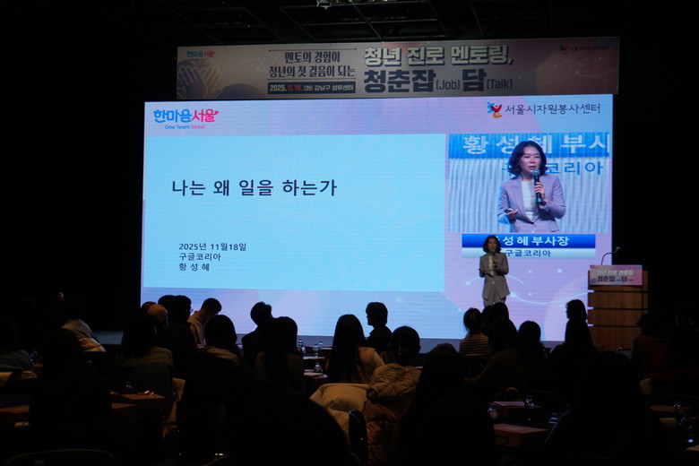 [서울 세계타임즈=이장성 기자] 서울시자원봉사센터(센터장 송창훈)는 지난 11월 18일(화) 서울 강남구 섬유센터에서 서울 소재 기업‧기관 임직원 봉사자 48명과 함께 청년 150여 명을 대상으로 진로 멘토링 프로그램 ‘청춘잡담(Job Talk)’을 진행했다.