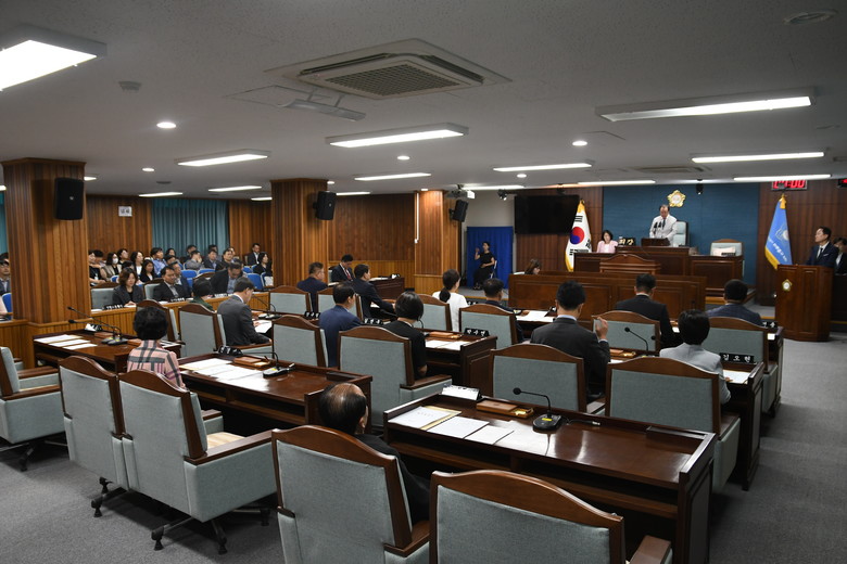 배상록 의장은 개회사를 통해 “이번 정례회는 2023년 회계연도 결산과 2024년 1회 추경예산에 대한 심사가 예정되어 있는데, 심사 과정에 들이는 노력과 땀의 무게에 따라 지역발전과 구민의 삶의 질이 달라진다는 점을 유념하여 최적의 결과를 도출할 수 있도록 노력해달라”고 당부했다.