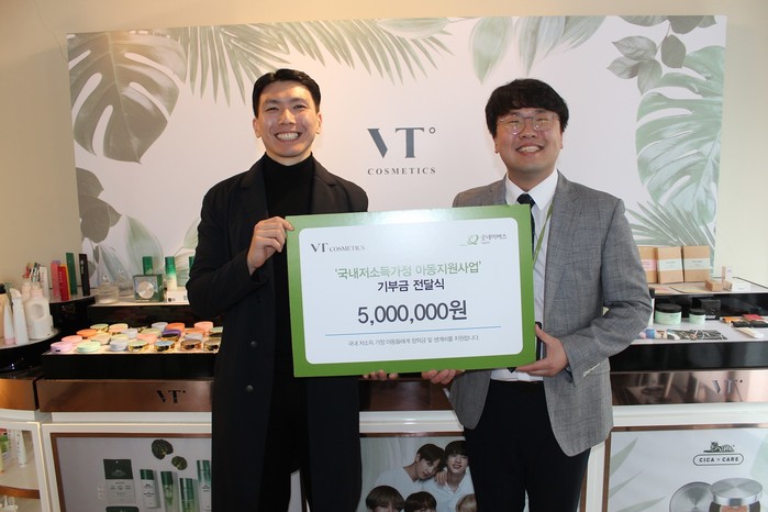 정철 브이티 코스메틱(VT COSMETICS)대표는 “소비자들의 성원에 보답하고자 굿네이버스를 통해 기부를 하게 됐다”며 “앞으로도 꾸준한 사회 환원을 통해 지역사회의 복지 증진에 앞장서겠다”고 말했다.