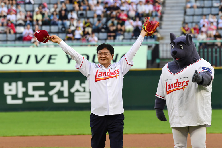 [강화군 세계타임즈=심하린 기자] 박용철 강화군수는 지난 26일 인천 문학야구장에서 열린 SSG 랜더스의 홈경기에서 시구자로 나섰다.