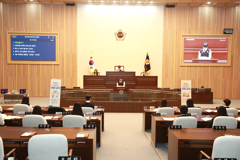 청소년 의회교실은 학생들이 1일 도의원이 되어 본회의장에서 의장 선거, 안건처리, 2분 자유발언 등 의정활동을 체험하는 프로그램이다.