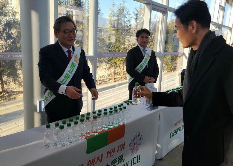 - 꿈씨패밀리 활용해 우수한 품질과 안전성 홍보 나서 - [세계타임즈=대전 이채봉 기자] 대전시 상수도사업본부는 유성복합터미널 개장을 맞아 28일부터 2월 12일까지 16일간 터미널 내 ‘관광안내소(꿈돌이와 대전여행 2)’ 앞에서 대전 수돗물 ‘이츠수’ 시음회를 진행한다.