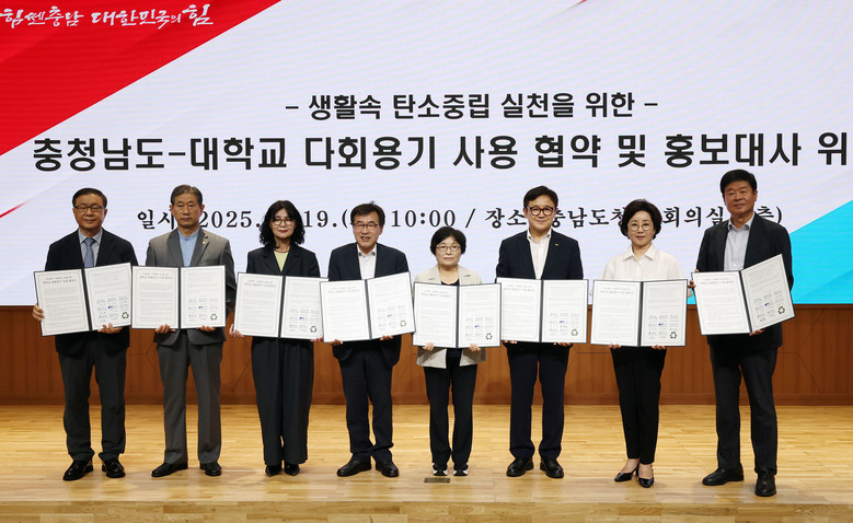 정부 계획보다 5년을 앞당긴 2045 탄소중립 실현과 1회용품 감축을 목표로 마련한 이번 협약에는 △국립공주대 △남서울대 △세한대 △순천향대 △연암대 △청운대 △혜전대가 동참했다.