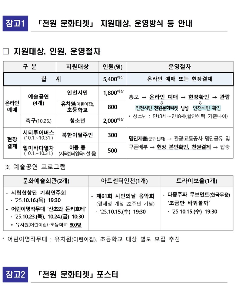 - 예술공연, K리그, 시티투어버스와 월미바다열차까지 아우르는 인천형‘천원 문화티켓’-