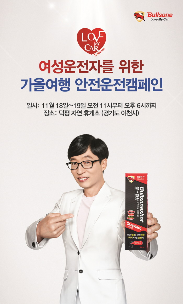 [세계타임즈 이영진 기자]자동차용품전문기업㈜불스원이 11월 18일(토)와 19일(일) 주말양일간경기도이천시덕평자연휴게소에서‘여성운전자대상가을여행안전운전캠페인’을전개한다.