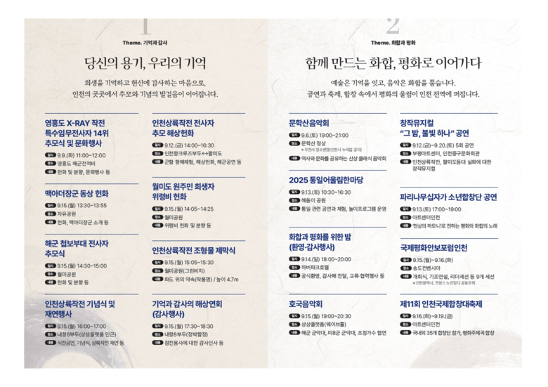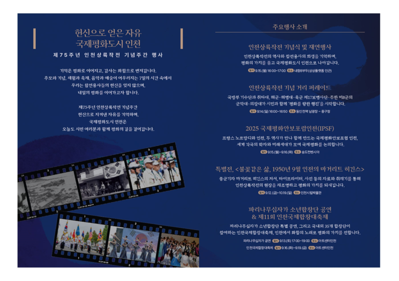 인천시는 인천상륙작전의 역사적 의미를 공유하고 화합과 평화의 메시지를 전달하기 위해 다양한 문화행사를 준비했다.