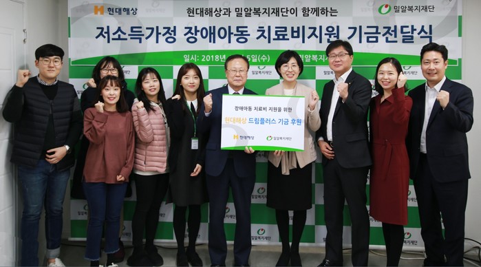 이 기부금은 현대해상 임직원들이 급여의 일정액을 기부해 조성된 ‘드림플러스기금’으로, 한 해 동안 모은 기금을 통해 소아암과 장애로 치료 받고 있는 저소득층 아동·청소년의 치료비 및 수술비를 지원하고 있다.