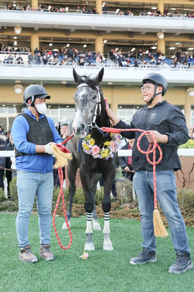 [세계타임즈 = 송민수 기자] 3월 24일(일) 한국마사회(회장 정기환) 렛츠런파크 서울 제7경주로 열린 제27회 동아일보배(L) 우승은 부산경남의 ‘즐거운여정’(한국산 4세 암말, ㈜나스카 마주, 김영관 조교사, 서승운 기수)에게 돌아갔다.