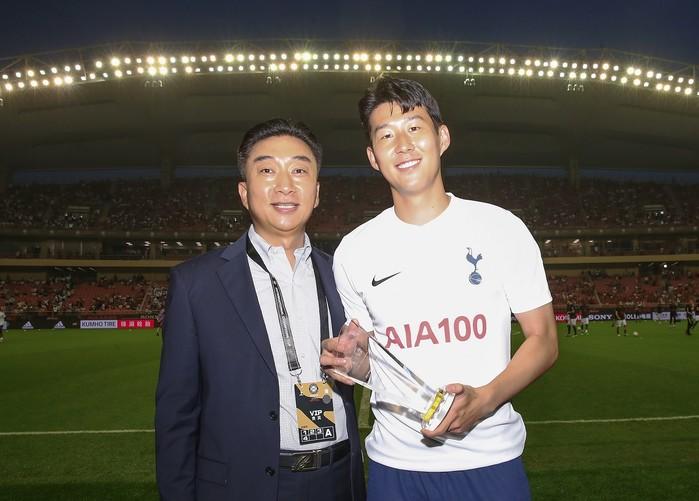 [세계타임즈 이광원 기자]2019년7월28일 –지난25일중국상하이훙커우축구경기장에서개최된‘2019 인터내셔널챔피언스컵(ICC)’경기에서한국AIA생명대표와토트넘핫스퍼선수중유일한한국인인손흥민선수가나란히단상에서는훈훈한장면이연출됐다.