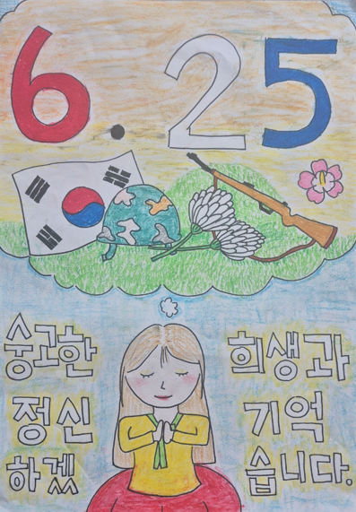 최우수상은 백운초 6학년 김현진 학생의 「6.25 숭고한 희생과 정신 기억하겠습니다」가 수상했으며, ▲우수상은 조림초 1학년 노보민 학생의 「할아버지 지켜주셔서 감사합니다」 ▲장려상은 진안초 1학년 이나윤 학생의 「고마운 사람들」, 김해율 학생의 「지켜주셔서 감사합니다」가 각각 수상의 영예를 안았다.