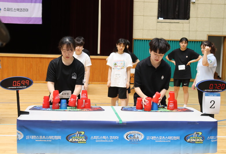 대중에게 ‘컵쌓기’ 또는 ‘손으로 하는 육상경기’로 알려진 스포츠스태킹은 12개의 스피드스택스 컵을 다양한 방법으로 쌓고 내리면서 집중력과 순발력을 기르는 기술과 스피드를 보여주는 스포츠경기다.