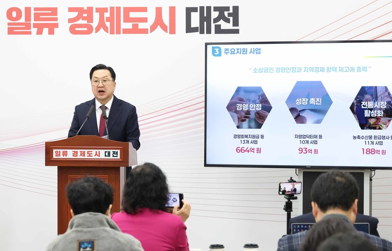 이장우 대전시장은 6일 열린 시정 브리핑에서 “소상공인은 지역경제의 뿌리이자 민생경제의 주역”이라며, 금융자금.고정비.소비촉진 전 분야에 걸친 3대 핵심 지원책을 발표했다.