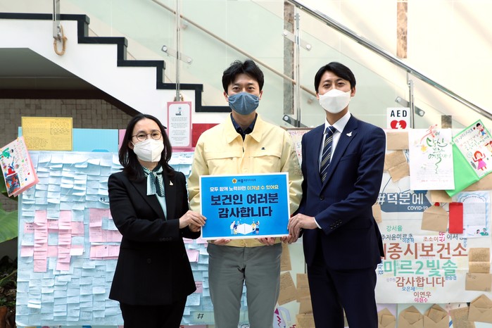 [세종=세계타임즈 이채봉 기자] 세종특별자치시의회(의장 이태환)는 7일 보건의 날을 맞아 코로나19 감염 확산 방지에 힘쓰고 있는 보건소와 보건환경연구원을 찾아 직원들을 격려했다.