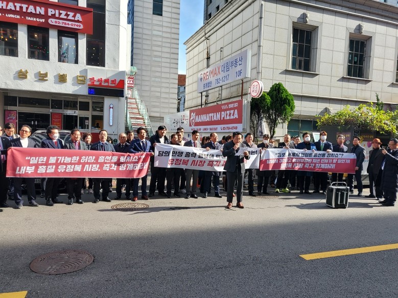 [세계타임즈 = 백진욱 기자] 지난 8일 국민의힘 당원들은 국민의힘 당사 앞에서 유정복 인천시장 징계 촉구 시위를 펼쳤다.