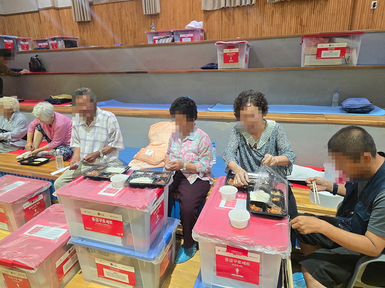 도시락은 군에 위치한 더본외식산업개발원을 거점으로 더본코리아와 자원봉사센터의 협업을 통해 매일 점심·저녁에 제공할 수 있도록 준비됐으며, 군 공무원, 자율방범대 등의 협력을 통해 약 20여곳의 임시 대피소에 전달됐다.