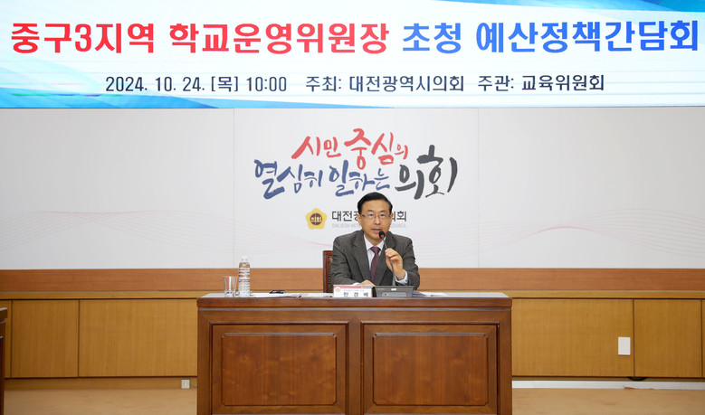 [대전 세계타임즈=이채봉 기자] 대전시의회 교육위원회 민경배 의원(국민의힘, 중구3)은 24일 오전 10시 의회 소통실에서 ‘중구3지역 학교운영위원장 초청 예산정책간담회’를 개최했다.