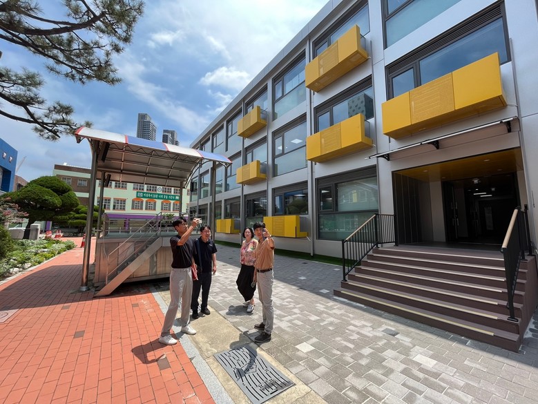 두 번째로 대구초를 방문, 요즘 과밀 학급 해소를 위해 전국적으로 도입이 확대되고 있는 모듈러 교실 내・외부를 둘러보며 운영 현황을 청취했다. 모듈러 교실은 이동형 조립식 건물로, 학교 신설이나 증축 공사 없이 공장에서 제작해 학교 현장에서 조립이 가능하며 향후 학생 수가 감소했을 때에도 철거가 용이한 장점이 있다. 설치 초반의 우려와는 달리 현재 학생들과 학부모들의 만족도가 높은 편이지만, 현재 수요에 비해 공급업체가 한정적인 문제 등으로 인해 설치비용이 높아지고 있다는 점은 교육부와 조달청 차원의 대책이 필요할 것으로 진단했다.