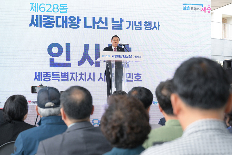 행사에는 최민호 시장, 최홍식 세종대왕기념사업회장, 최교진 세종시교육감을 비롯해 시의원, 세종시 한글사랑위원회, 시민 등이 참여해 세종대왕 나신 날을 함께 축하했다.