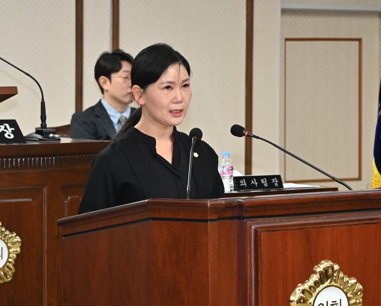 | ▲ 오한숙 의원이 제255회 임시회 제1차본회의에서 5분자유발언을 하고 있다. |