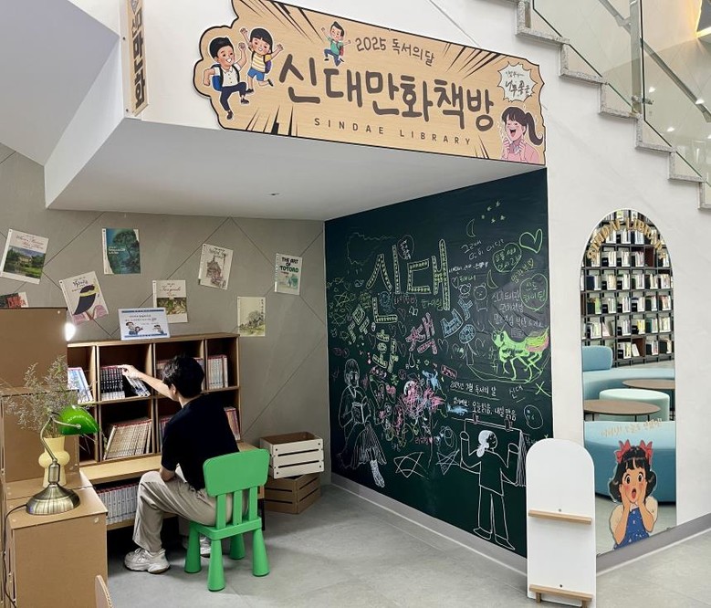 | ▲ 신대도서관을 찾은 시민이 만화책방을 이용하고 있다 |